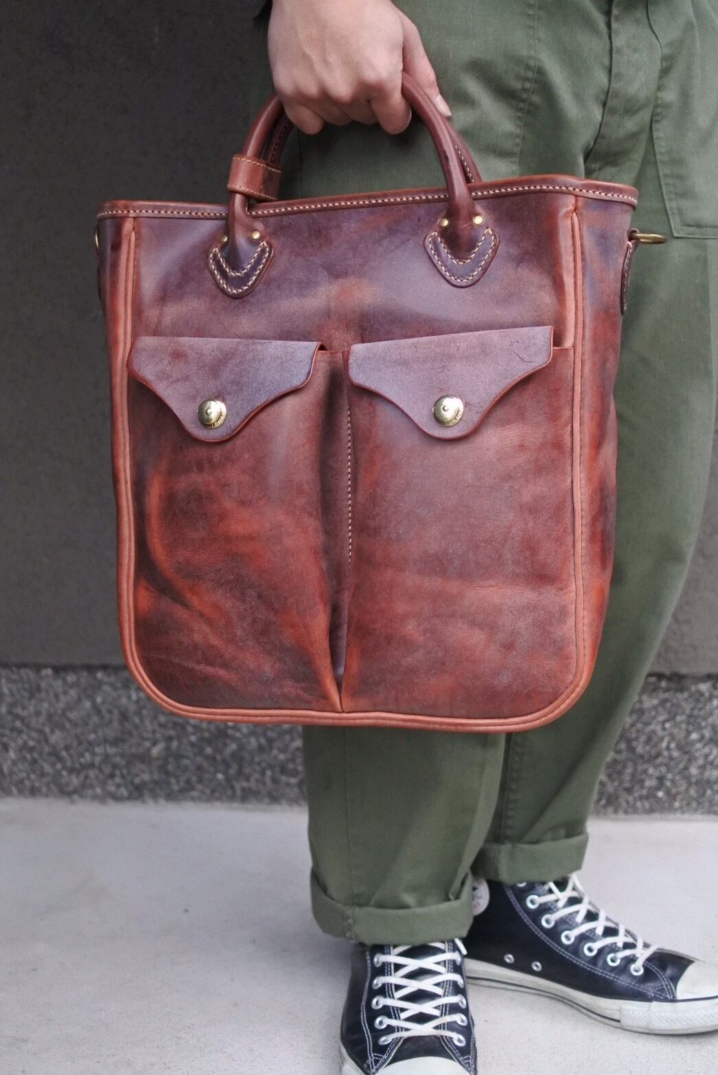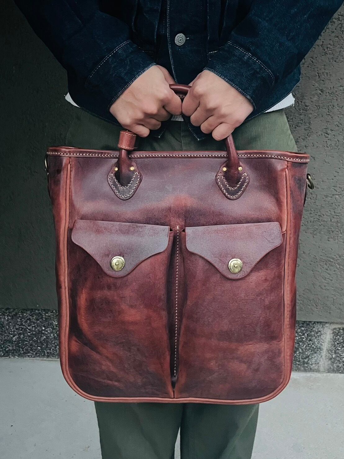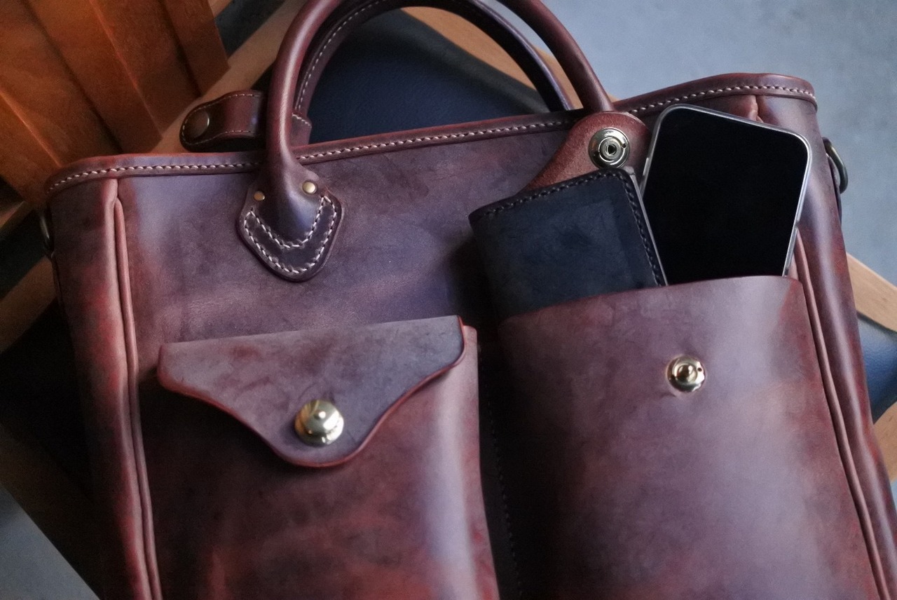 高級ブライドルレザーを贅沢に使用した、LB-01-BGD-BRI(ダブルフラップ トートバッグ・ダークブラウン)がラインナップに追加!