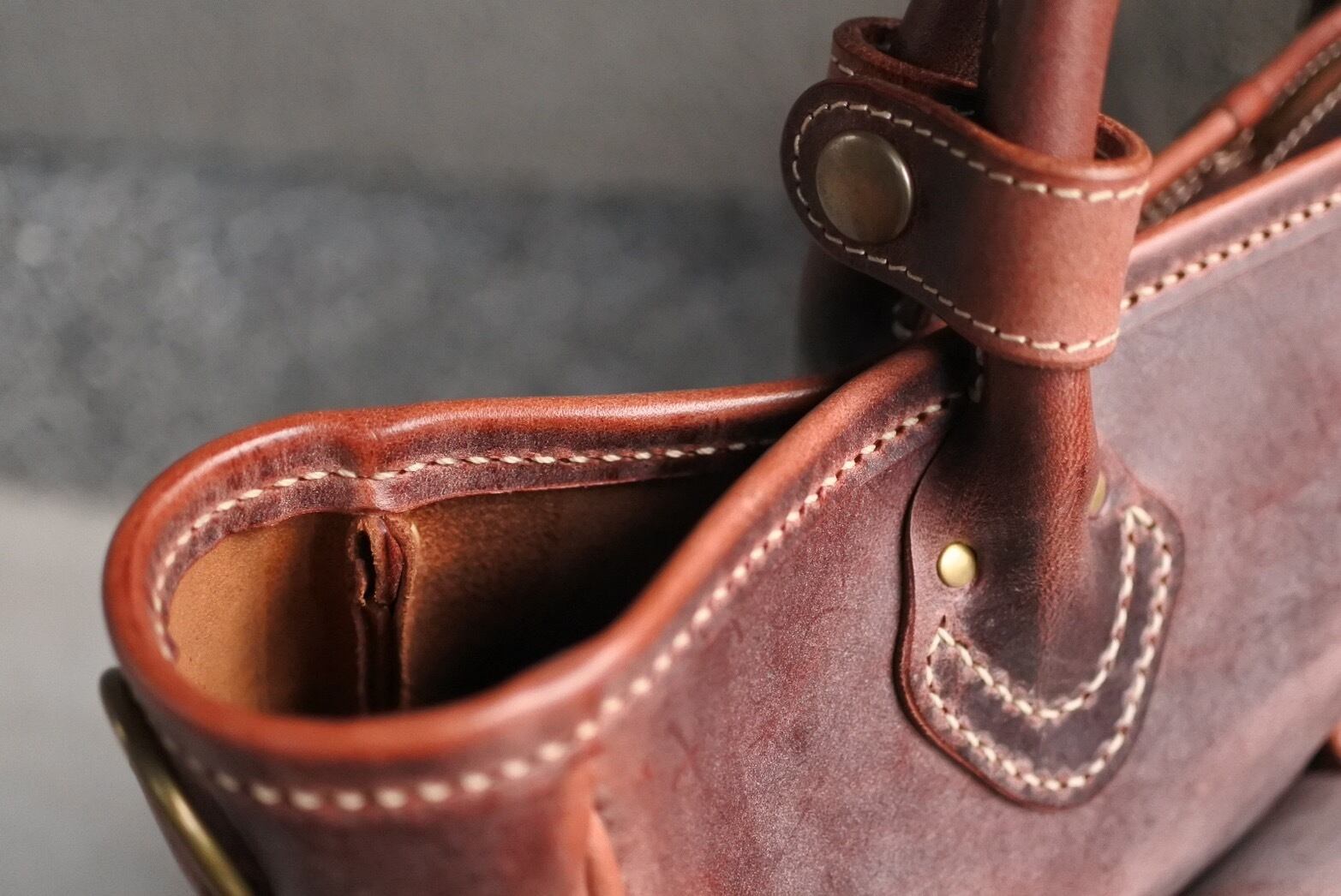 ※ブライドルレザーの特性上、経年変化や色の濃淡が生じる場合がありますので、水濡れや摩擦には十分ご注意ください。また、レザー素材には個体差がございますが、その独特な風合いをお楽しみいただければ幸いです。
