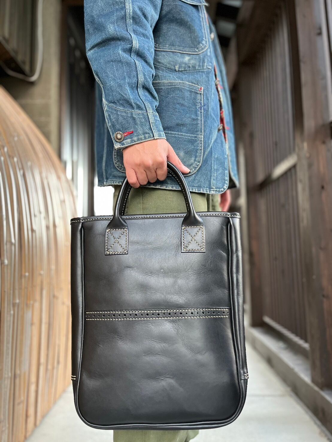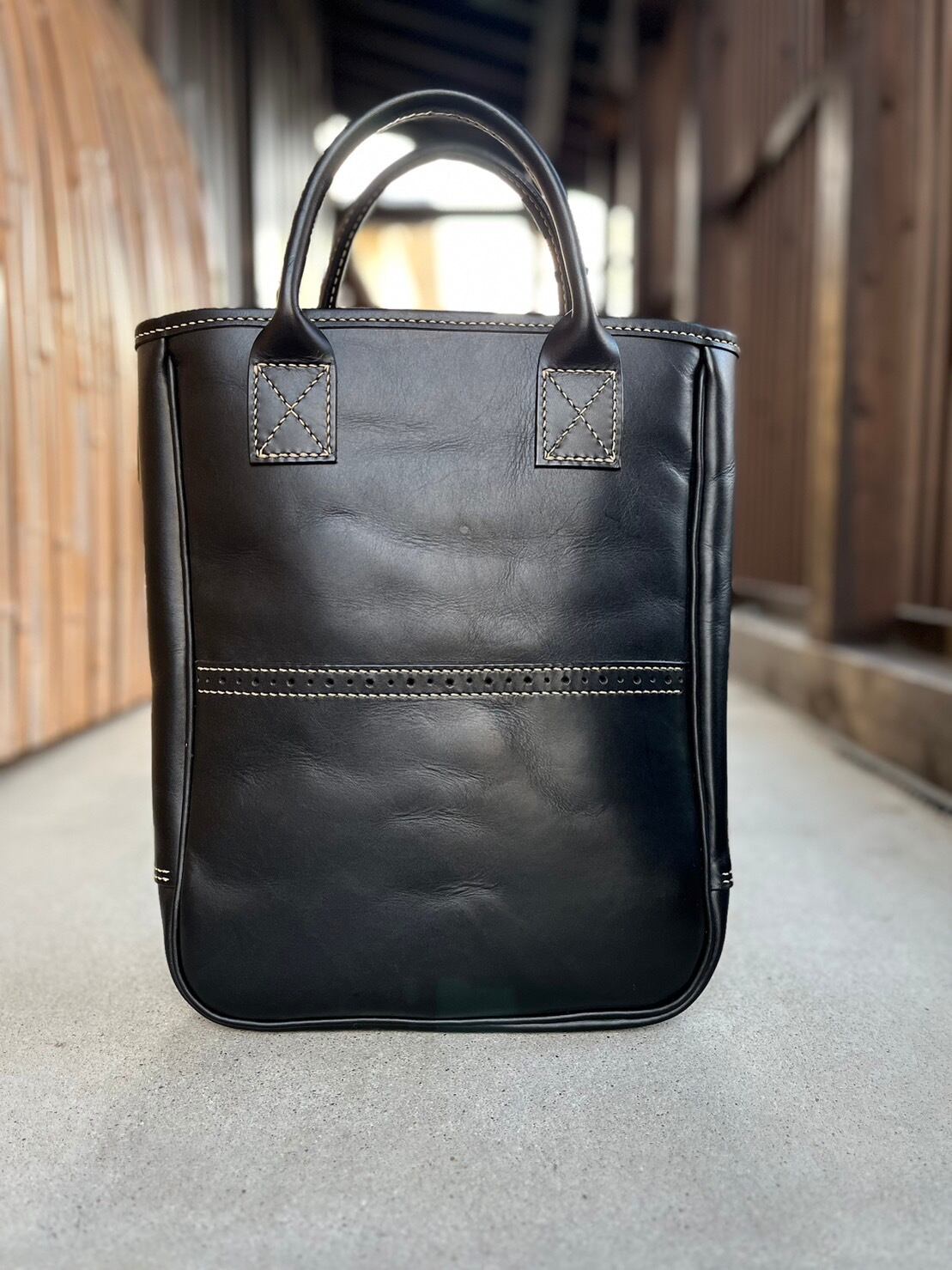 LB-02-BLK レザートートバッグ【Log Design】
