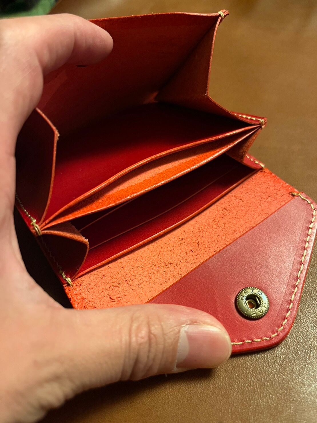 上品さとアクセントのあるカラーが魅力!<ヌメ革> Palm Wallet(ミニウォレット)Red【LoG Design】は、あなたの鞄の中をスタイリッシュに演出します。